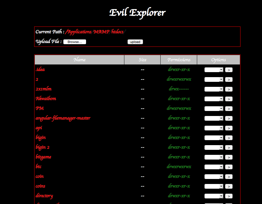 Evil Explorer works with all kinds of Web Servers. it support both unix, linuix, windows and localhost.
